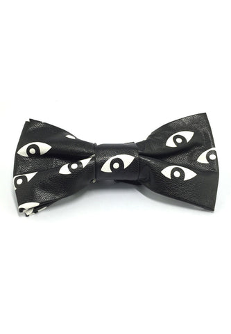 Fluky Series Black & White Eyes Design PU Leather Bow Tie